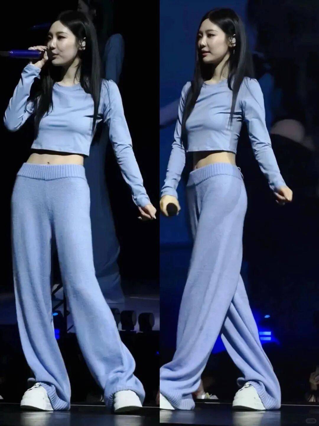 作为Alo品牌代言人的宁宁身着品牌雾霾蓝运动套装,短款瑜伽服露出马甲线,真的越来越瘦。
